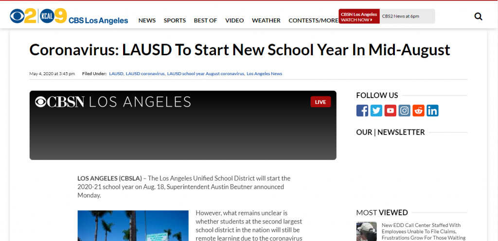 “2020-21学年将于8月18日开始,”Beutner说道,“关于是否开放学校设施,我们还没有做出决定,除非科学和卫生当局告诉我们这样做是安全和适当的,我们才会这样做。”