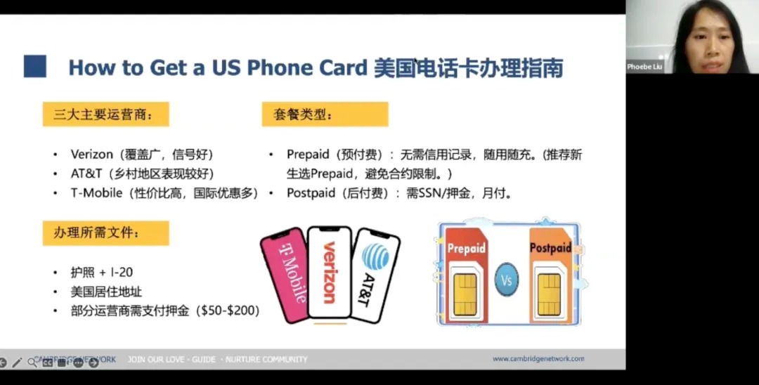 针对抵美后的生活起居,剑桥FEA老师从一些实用信息方面,例如办理电话及银行卡、在美常使用的软件、开学前要做的体检疫苗等准备。